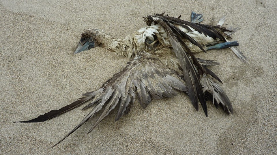| Since June, there are hundreds of boobies that have been found dead on the Ecuadorian coast. Image from Sept.27/2014 between Manglaralto and Rio Chico (Beth Pitts) |