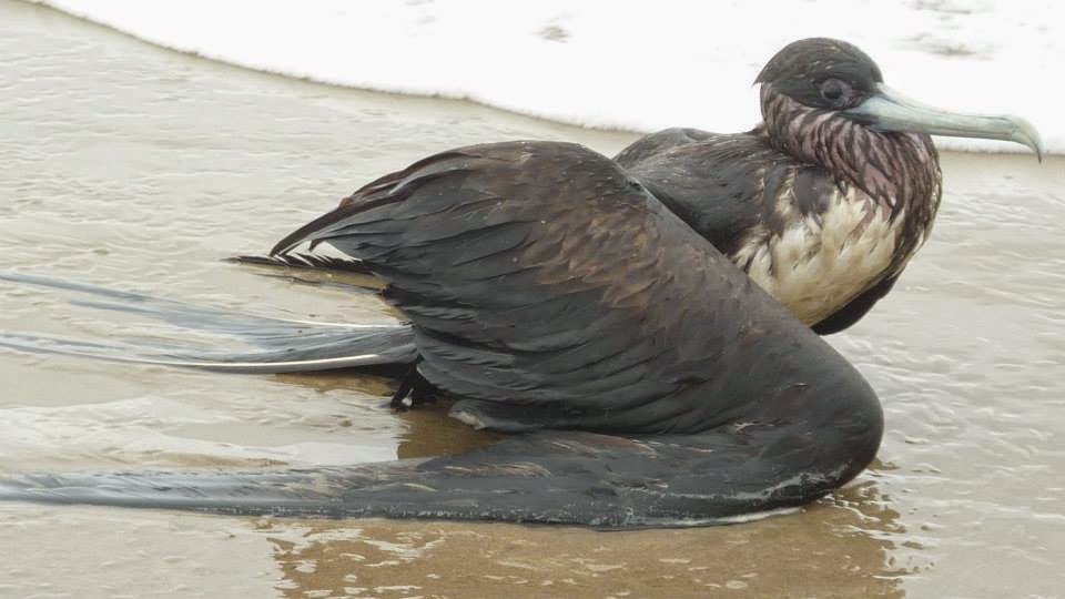 | A dying frigate on the beaches of Rio Chico. Photo: Beth Pitts (September 27) |