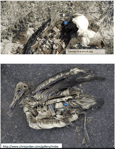 Se estima que de las 312 especies de aves marinas al menos 111 han ingerido basura.